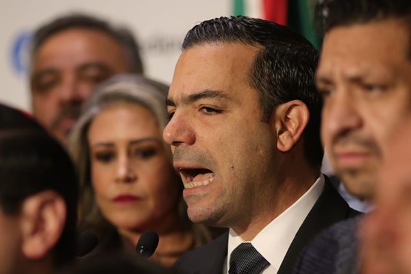 Conferencia de prensa de los diputados y del CEN del PAN, encabezada por Elías Lixia y Jorge Romero, dónde crítico la intención del gobierno federal de regular las redes sociales y la inteligencia artificial, además de reconocer al PT y PVEM su gesto de autonomía y valor de enfrentarse a los designios de Claudia Shiembaun. Fotos Bruno Cortés/Maya Comunicación